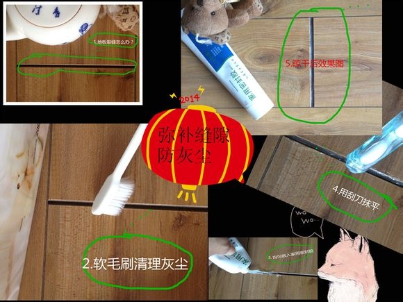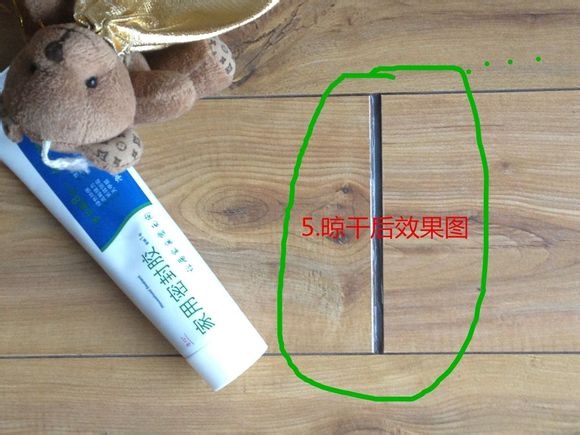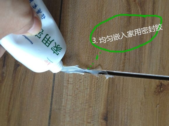 3、地板是家居里最耐用的物品了,天天接受践踏也无怨无悔。可能是有苦说不出,第七年的时候在太阳天天照耀的一个地方,自己裂开了几个缝隙,平时打扫的时候都能抠出些许碎物件和灰尘来。于是就想堵住这些缝隙,原来曾经用双面胶粘过,但过一段时间就掉下来,同时还要清理胶粘过的痕迹,麻烦的很。现在有了这个家用的密封胶,还是比较方便的。像挤牙膏一样好操作,偶一小女子就把地板裂缝修好了。